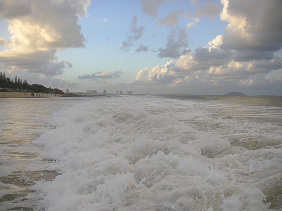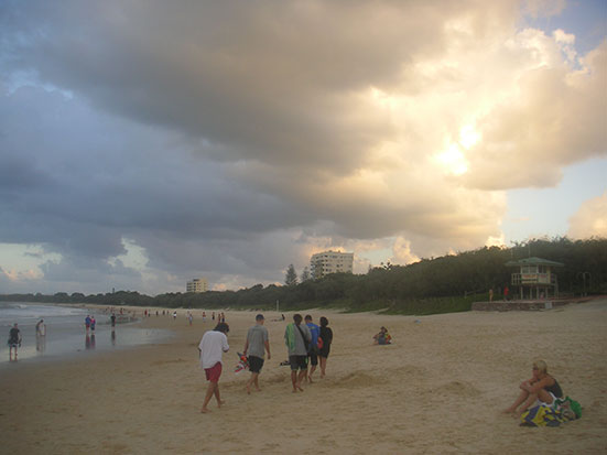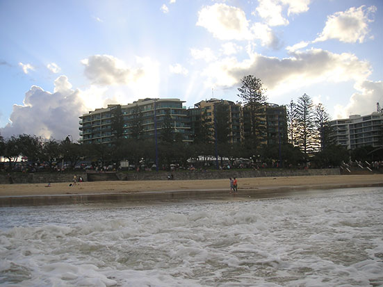 Es gab aber viele interessante Tiere zu bestaunen. Von fast jedem schoss ich ein Photo. Die meisten Tiere posierten auch fein. Die Kängus lagen relaxt im Sand, witzige Tiere. Ich sah bissel was von ’ner Croc-Fütterung, streichelte ’nen Koala (Kuschelig) und nach 2 1/2 Stunden durch den netten Park ging’s weiter nach Mooloolaba. Fast niemand wusste etwas von dem Ort. Im Hostel lag noch ein letztes Boogieboard herum und ich ging mit einem Briten an den Strand.