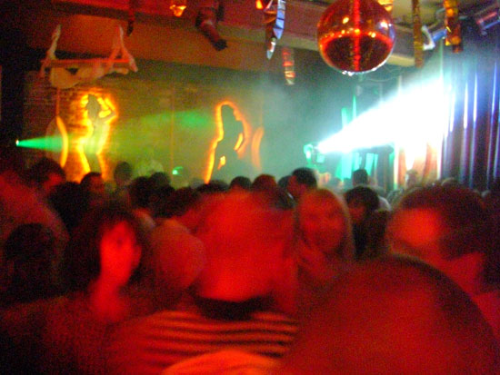 Nach 1 kam ich los, nahm ’nen Schlüssel und merkte vor der Tür, dass es der falsche Schlüssel war. Ich klingelte, doch niemand wachte auf. Also fuhr ich einfach so los ins Del Sol – „Disco Disco“. Die Bouncer sagten, dass gerade Einlassstopp ist. In ’ner Stunde oder so gänge es wohl rein. Kein Bock, weitere Leute standen dann auch vor der Tür. Eine alte Klassenkameradin kam raus, kurzes Gespräch. Noch mehr Leute kamen raus und ich rein. Garderobe €0,50. Das ist doch mal nett, nach den $4 im Pacha in NYC +$1 Trinkgeld, das sich da immer gleich einbehalten wird. Ich merke jetzt die Vorteile von Chemnitz.