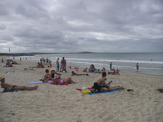 Gegen Mittag kam ich dann los und bin runter zur Main Beach von Noosa. Schöne Lage und einigermaßen viele Leute. Die Wellen waren auch gut und Bodysurfen klappte ein paar Mal. Nachdem ich die Nase langsam voll mit Salzwasser hatte, war es schon halb vier. Bissel Tetris aufm Handy und relaxen. Ein Eis versüßte wieder einmal den Weg zurück. Die Stadt ist zwar ein bissel zu schick aber hier könnte ich es auch ’ne Woche aushalten.