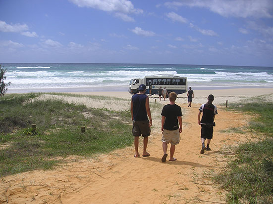 Mit dem Frühstück startete der Tag schon mal richtig gut. Mit dem Bus ging’s zur 70 Mile Beach und so sah ich das erste Mal den Highway der Insel. Ein Strand, so weit das Auge reicht. Drauf fuhren die 4WD und natürlich auch die Busse.