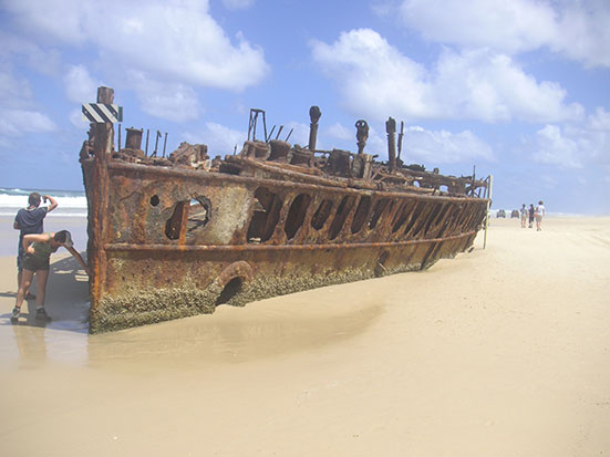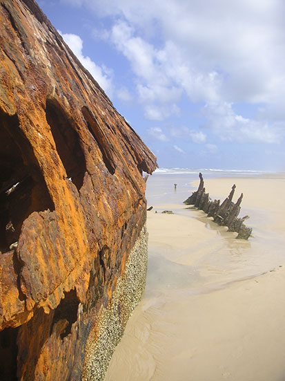 Der nächste Stopp war ein Schiffswrack. Ein alter Oceandamfer, der zu seinen guten Zeit schnell war und ins seinen schlechten Zeiten als Bombenziel der Army diente. Jetzt lag das Ding da und rostete vor sich hin, der Großteil vom Sand begraben.