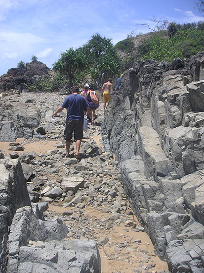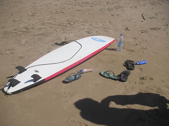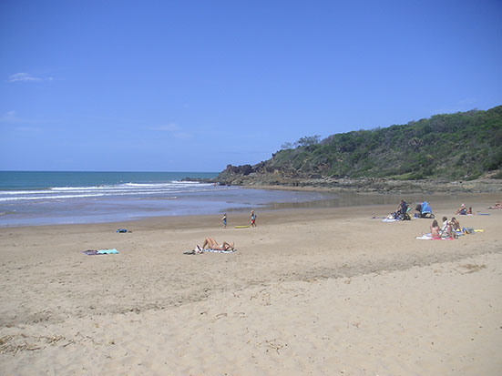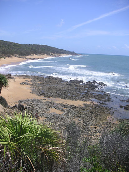 Mittag hatte ich im Ortzentrum. Veggie-Burger und noch eine kleine Pizza auf dem Weg. Der Engländer war auch mit und wir gingen dann an den Strand. Obwohl 1770 wirklich winzig ist, hatte ich hier Orientierungsprobleme. Am Strand sah ich die Wellen und ging zurück zum Surfshop. Das Brett kostete nur $15 für minimum 2 Stunden. Die hatte ich mit, als Deposit nahm der alt-coole Surfer meinen Hostel-Key. Mann, hatte der immer lockere Sprüche „Digger“. Ich also zurück an den Strand und ein paar Versuche im Wasser. Whitewater klappt gut – mit richtigen Wellen habe ich noch Probleme. Die Nosedives waren heftig und nach ’ner Stunde gegen die Strömung war ich fertig genug.