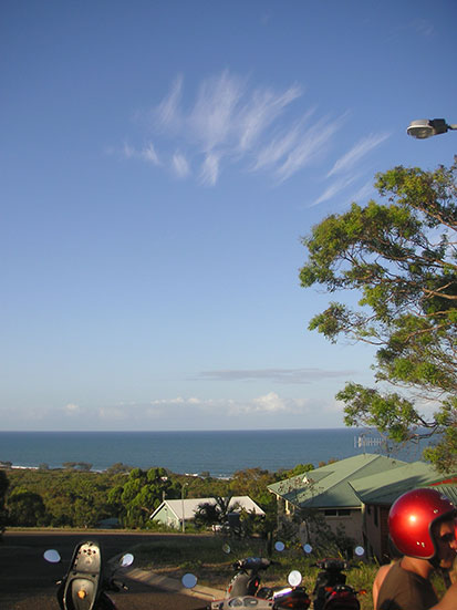 Hier in der Gegend sind die Straßen fast komplett leer. Cool aufm Roller ging es durch die schöne Landschaft. Bergauf, bergab an Känguruhs vorbei. Es war einfach super! Bergab schaffte meiner bis Anschlag Tacho. War alles sehr sicher und die Sound witzig. Die Straßen frei und alles locker. Ein Doppel haute es doch mal in einer Kurve hin. Nichts ernstes aber für die war der Spaß gelaufen.