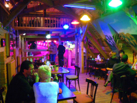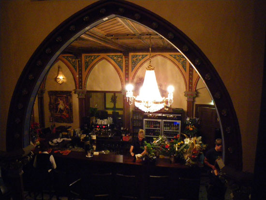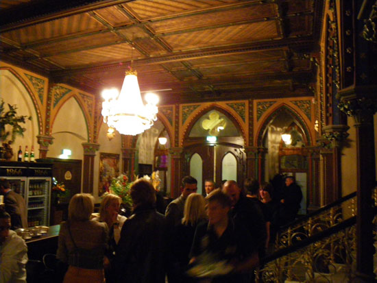 Wir schauten rein, wirklich toll renoviert. Die Farbgebung innen schaute etwas russisch für meinen Gescgmack aus, war aber sicher so im Original. Viele Details, viel Liebe und Geld müssen hier rein geflossen sein. Ich hatte ’nen Rum&Coke. Alles gut, bis auf die Musik. House Parties könnten hier auch gut laufen. Heute wurde eher der ältere Geschmack bedient.