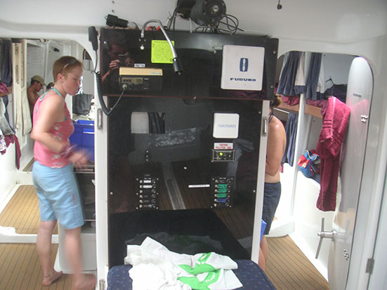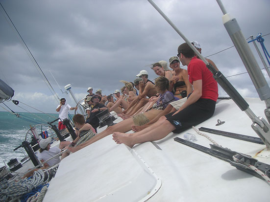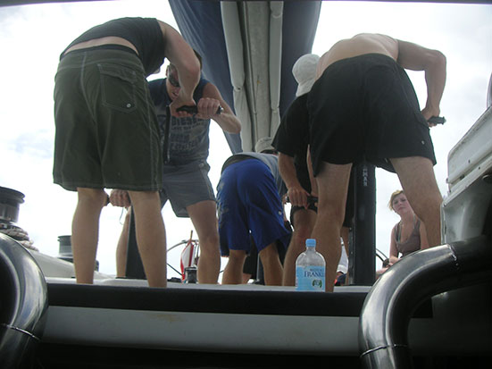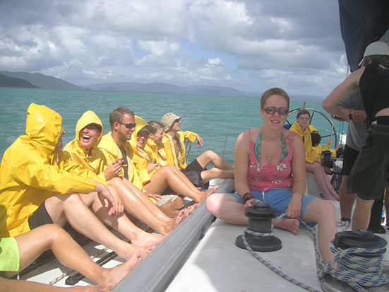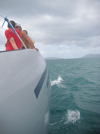 Zu guter Letzt wurden wir dann auch wieder aufs Bot geschafft und ich war super happy. Von Bord hüpften wir noch öfters ins Wasser. Ein Spanier, der immer Spaß machte, hatte auch wieder ein paar witzige Einlagen. Nach dem Mittag ging wieder mit dem Wind zurück nach Airlie Beach. Ich saß vorne, ließ mir das Wasser ins Gesicht fliegen und machte Photos.