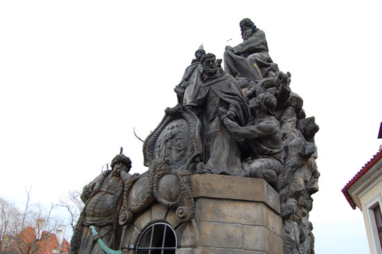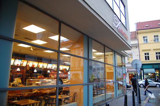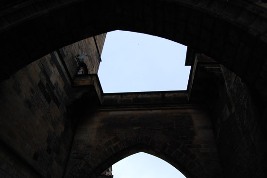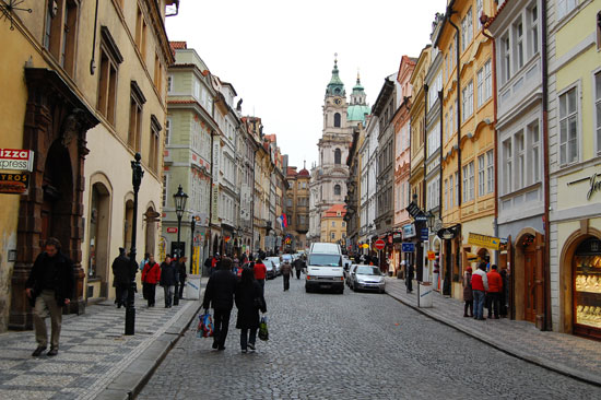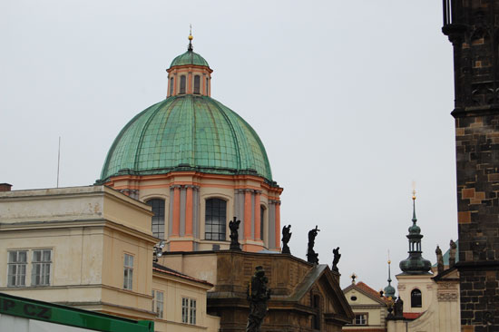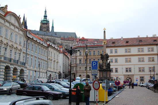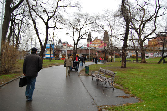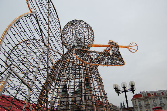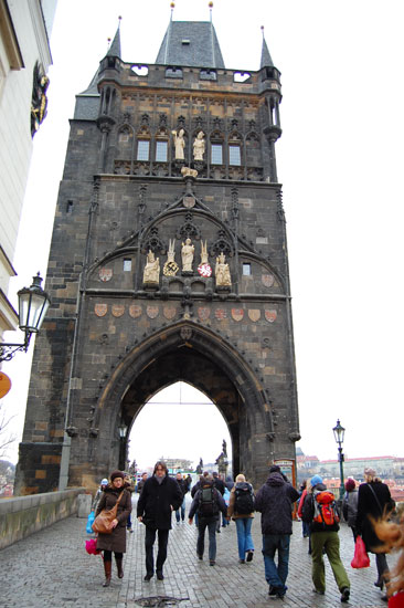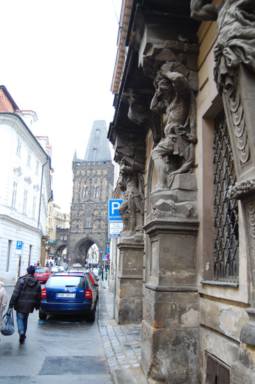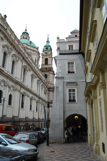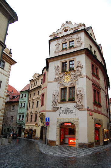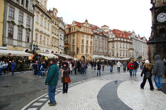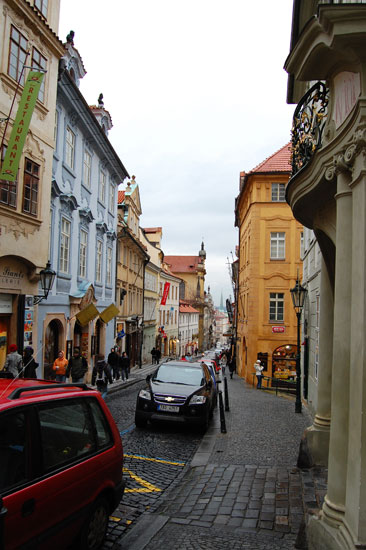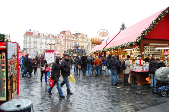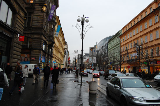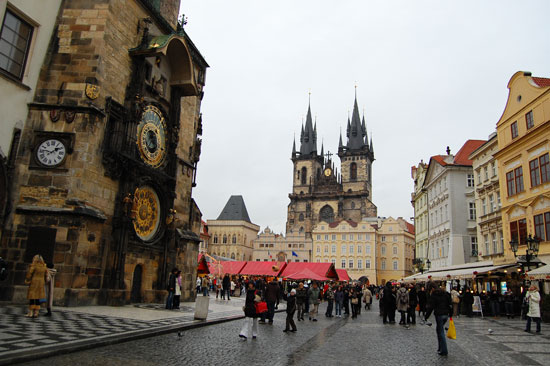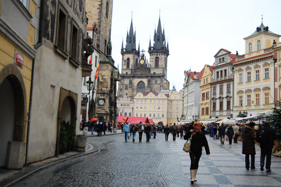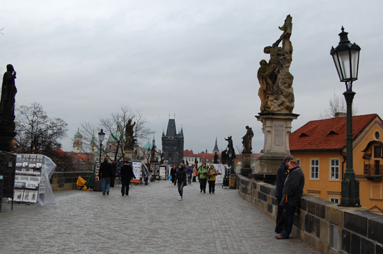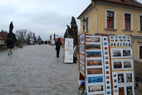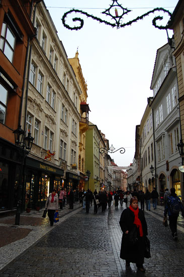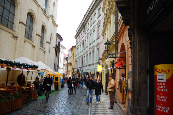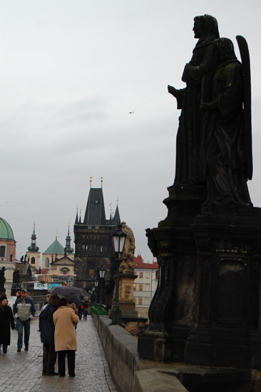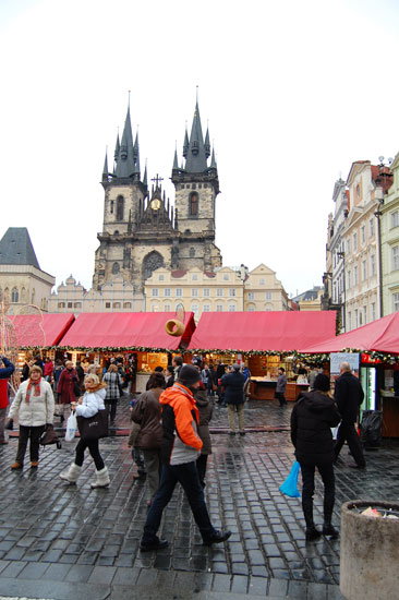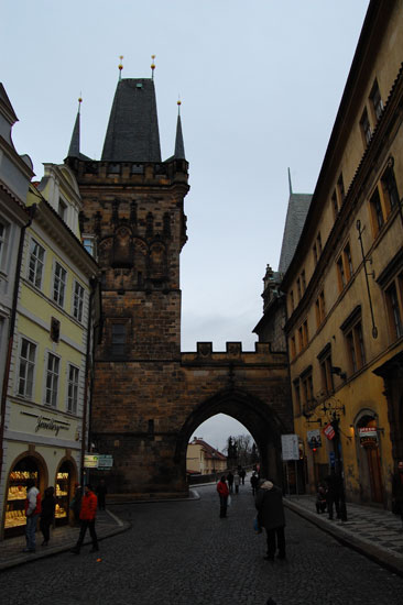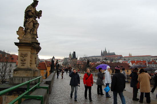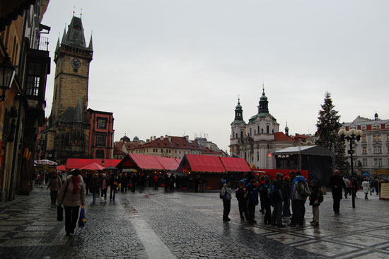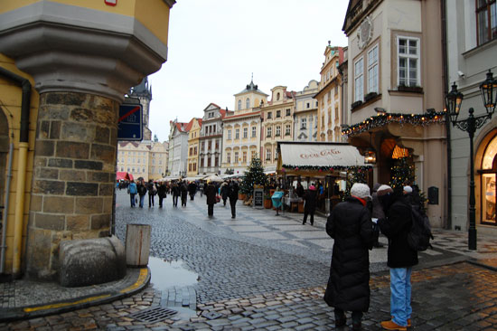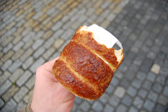Nebenan kaufte ich ’nen Kaffee-Topp als Souvenir. Es ging über die Karlsbrücke und durch die Altstadt. Es nieselte doch ich knippste weiter mit der D40 vor mich hin. DSLR macht schon Spaß – auch wenn nicht ganz wetterfest. Auf dem Marktplatz war Weihnachtsmarkt und inzwischen nach 14:00. Ich aß noch eine Art Schweinsohr-Kringel für um die €2. Mampfend kam ich in die Gegend des Hostels, in dem ich das vorige Mal (Sept 2007) schlief. In der Bäckerei holte ich was zu essen und trinken für die Fahrt. Ein paar Kronen blieben übrig.