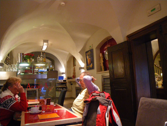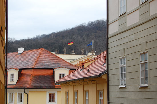 Ziemlich pünktlich checkte ich ausm Hotel aus. Mit meinem Rucksack wollte ich vom Hotel oben in der Hradshin-Gegend zum Bahnhof spazieren. Es ging ja wenigstens bergab. Erst mal hatte ich ein Omelette-Frühstück.