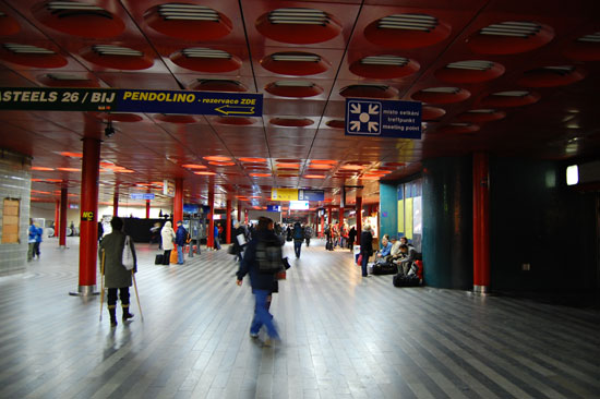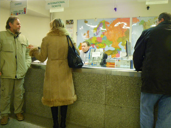 Das internationale Ticket bekam ich auch problemlos in der oberen Etage. Dann wartete ich auf de Info, auf welchem Bahnsteig der Zug einfährt. Da war ich nicht der einzige.