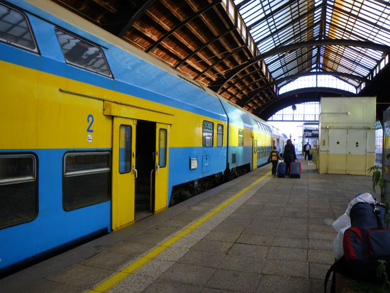 Keins zu finden, dann weiter zum Blumenmarkt und da sah ich eins. Ein lustiger Ukrainischer Taxifahrer hatte blendende Launde an diesem verregneten Vormittag. Er erzählte, lachte und hupte. Ich verstand kaum ein Wort, war aber kurz vor 10 aufm Bahnhof. Der Zug sollte 10:37 abdampfen..