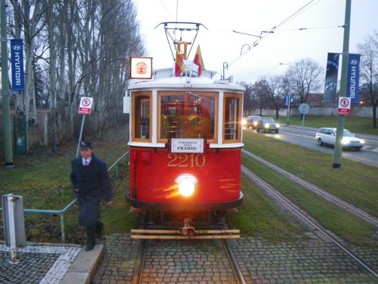 In Dresden ging’s dann direkt mit einem EC nach Praha Holesovice. Ich hatte mir die Verbindung der U-Bahn und Straßenbahn in der Nacht noch rausgesucht und wusste nun, wie ich zu fahren hatte. Bis Muzeum und dann mit der Straßenbahn 22. Ein paar Haltestellen vorm Aussteigen blieb die Bahn stehen. Hinter uns stand auch eine. Ein Fahrer kam rein und sagte irgendwas von 5/15 Minuten, was ich so verstand. Ich ging raus und spazierte los. Ein Auto war in eine Bahn vorne gefahren, die Polizei rückte gerade an.