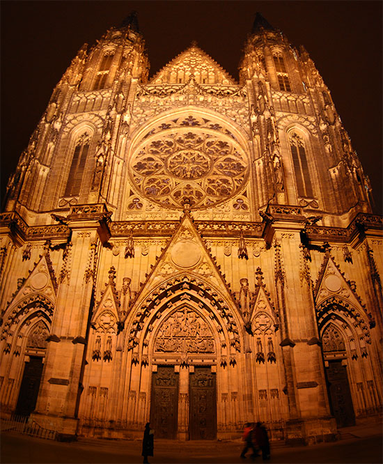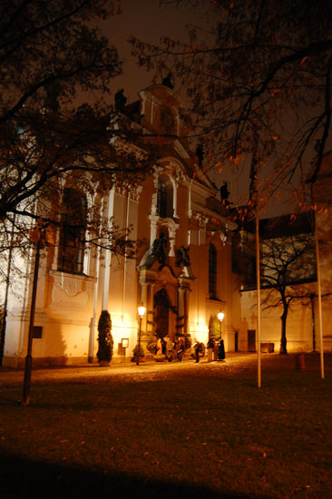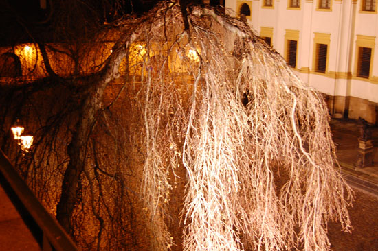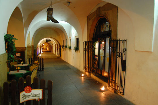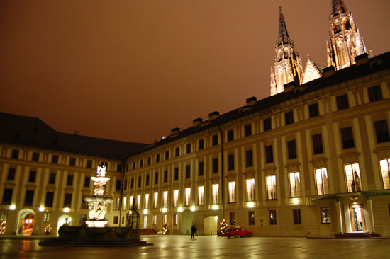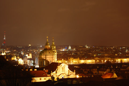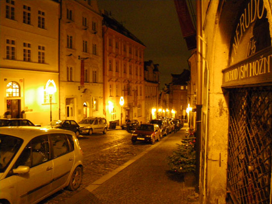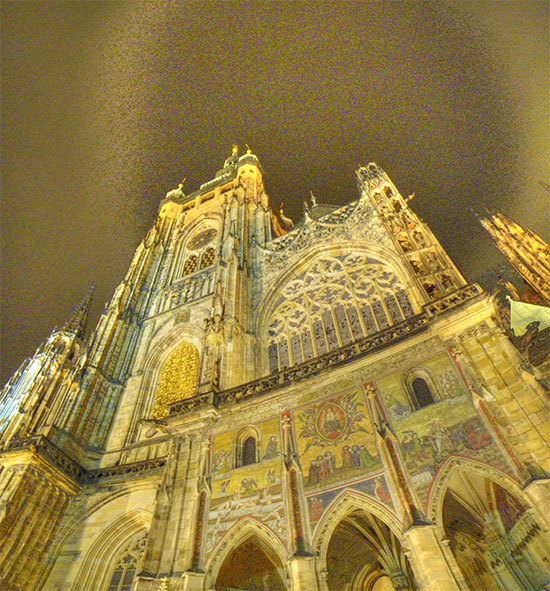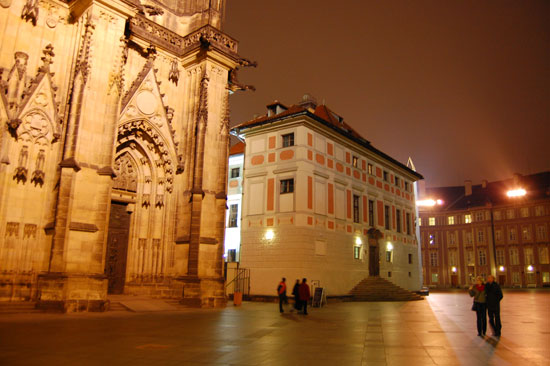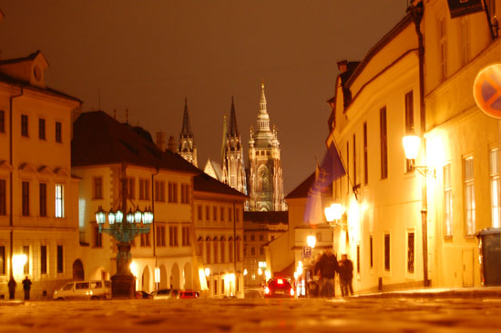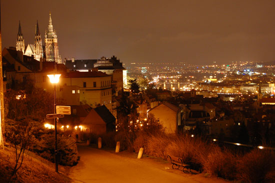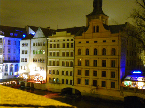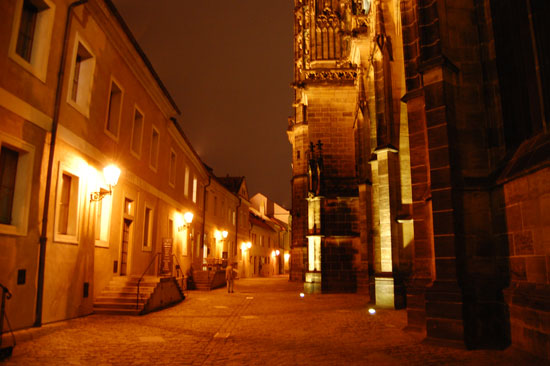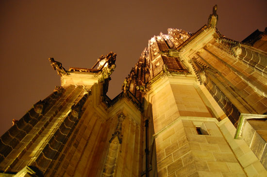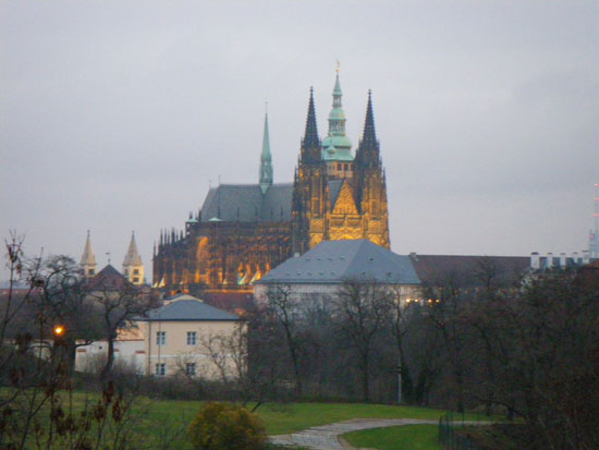 Ich drehte eine Runder mit der Nikon und Penatx und knippste bissel herum. Die Kathedrale und Stadt – sah alles schön aus. Es war kalt und wurde auch nass. Hunger hatte ich nach ’ner Weile auch. In Holesovice hatte ich nur 400 Kronen aus der ATM gezogen, was etwas wenig war (ca. €16). Für ein sehr leckeres Abendessen in einer Art Gartenkantine reichte es aber. Kotellett, Pommes für um die €8.