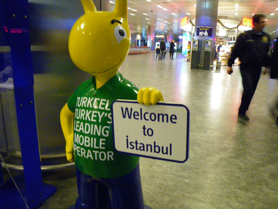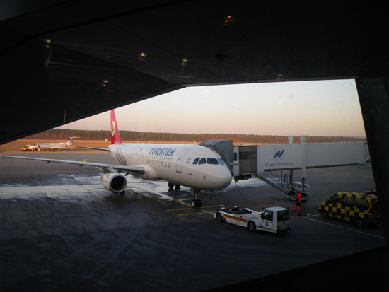 In Nürnberg schaffte ich die U2 nicht, wartete nochmal 13′ und hatte auf dem Flughafen mehr als genug Zeit. Ein Türke regte sich fürchterlich auf, weil sein 38kg Koffer nicht mit durfte. 32kg ist das Max-Gewicht. Einchecken problemlos, ein Sandwich und rechtzeitig zum Gate. Dann kam die Meldung, dass der Flieger erst 15:50 statt 13:45 abfliegen sollte. Der Grenzer wollte das Gate wieder schließen und ich legte mich auf ein paar Sitze. Die Müdigkeit kickte jetzt. Ich schickte noch ’ne Mail ans Hostel in Istanbul, da sie mcih abholen wollten.