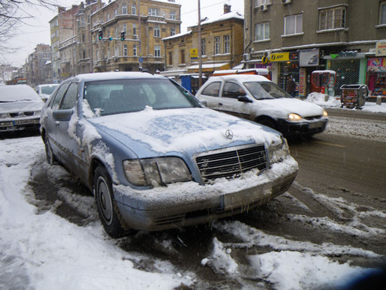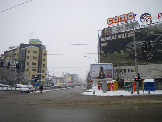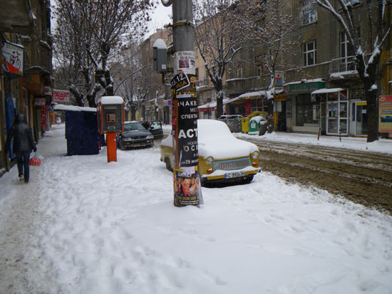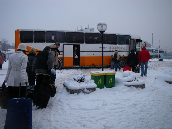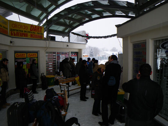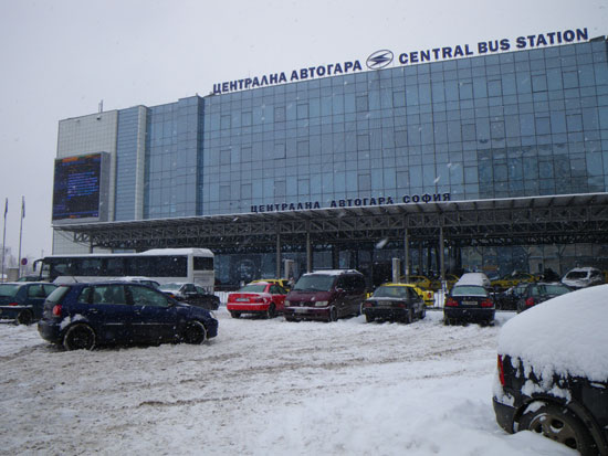 Bei so viel Schnee, kam das Taxi nicht ganz so zügig voran. Es wurde 15:50 und spter und ich wurde etwas nervös. Der Preis unter 4 Lev. Ist unglaublich, was ich da bei den anderen bezahlt habe. Wahrscheinlich hatte den Preis von 17 irgendwas falsch interpretiert. Ich hastete zum Parkplatz der Busse aber auf keinem war was von Skopje zu lesen. So ging’s zum Ticketverkauf und ich erfuhr, dass der Bus Verspätung hat.
