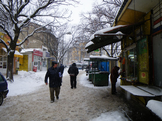 Ich hatte schön warme Sachen an und froh so gar nicht. Da kaufte ich mir auf dem Markt ein par lange unterhosen für 6 Lev (€3) und dann noch ’nen Topp. Ich sah auch ein paar Schuhe. Der Balkanstyle macht hier erst mal nüscht. Ich schwankte ewig zwischen 41 und 42er Größe. Beide waren OK, ich kaufte 41 und nahm am Ende doch noch 42. Kein Problem: 30 Lev (€15). Die Schuhe ließ ich gleich an. Fell innen und etwas wintertauglicher als meine Sketchers. Richtig warm wird’s dennoch nicht an den Füßen aber so ist das.
