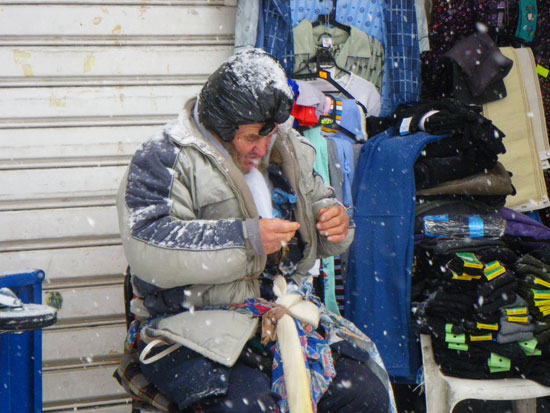 Ich schaffte es zum Frühstück, checkte aus und ließ meine Sachen waschen. Ein paar kleinere Wege hatte ich vor mir. Zuerst zum „Womens Market“. Es war enorm viel Schnee gefallen und schneite noch immer.