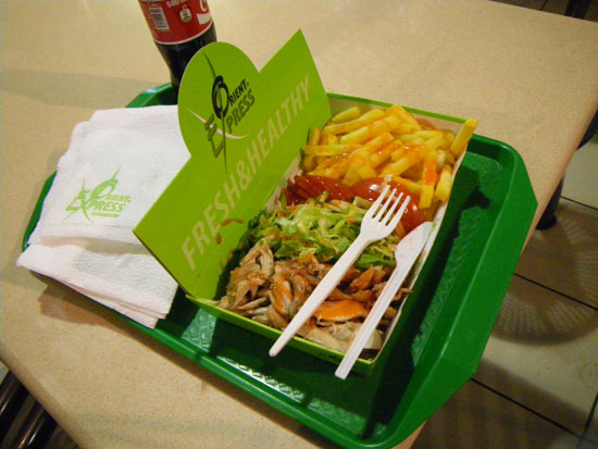 Ich spazierte weiter zum Busbahnhof. 16:00 wollte ich nach Skopje fahren. Im normalen Bahnhof gab es das internationale Ticket nicht – es war nebenan auf dem „Traffic Market“. Die Firma, die nach Skopje fährt hatte gerade Mittagspause. Also aß ich nebenan ’nen Burger mit Café un Coke. Dann kaufte ich das Ticket und wollte eigentlich mit ’nem normal billigen Taxi wieder zurück ins Hostel es war inzwischen schon weit nach 14:00. Viele Leute und viele Taxis aber ich kam irgendwie nicht an die Reihe. Ich gab’s auf und machte im Eilschritt zum Hostel. Auf dem Weg holte ich noch im Vorbeigehen noch ein paar Sandwiches für die Reise und aß ein Kebab-Menü zum Mittag. Im Hostel war ich dann kurz vor halb 4. Ein paar meiner neuen Bekannten waren da, meine Wäsche wurde gerade gelegt. Das passte alles super – Taxi gerufen – Verabschiedung und Eile.