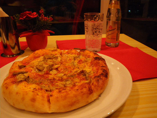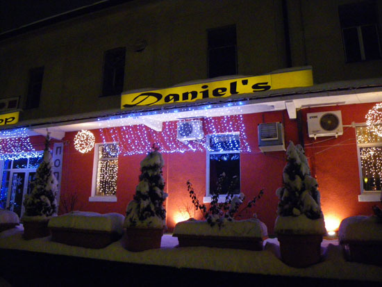 Vor Mitternacht ging ich noch was essen. Eine Pizzeria gleich an der Ecke mit einem Pakistaner, der gut Englisch sprach. Bissel Plauderei – ja, reisen mit Freunden ist cooler .. aber wer will schon nach Skopje? Die Pilz/Käse Pizza war super und ich zahlte mit Schweppes irgendwas unter €4. Den Marktplatz kann man sich anschauen und Wikitravel hat auch ein paar Tipps. Mal sehen, wie das Wetter wird. Erst mal hier und Belgrad später.