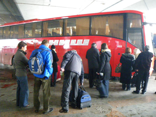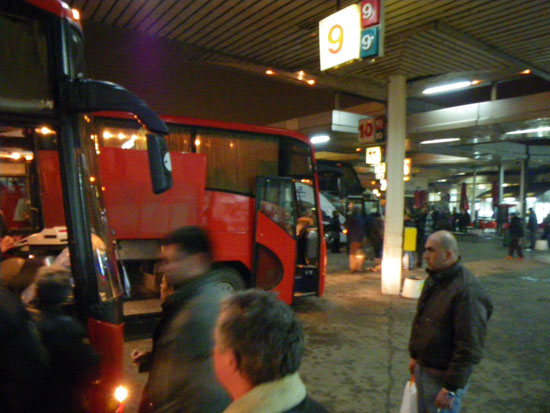 Mit dem Taxi ging’s zum Bahnhof. 60 Dinar – 100 gegeben. Da wird einem auch ganz eifrig beim Rucksack geholfen. Das Busticket nach Belgrad konnte man nicht mit VISA kaufen. Nur Maestro und so. Ich hatte nun noch um die 600 Dinar (ca. €10) und zog mit nochmal 1.000 für das Ticket (1.300). Mit dem Restgeld kaufte ich einen Cappuccino, ein paar Chips, was zu trinken und Kekse. 10 Dinar gab ich ’ner Toilettenfrau und hatte am ende ein 5 Dinar-Stück übrig. ganz schön schwer für 10 ct Gegenwert.