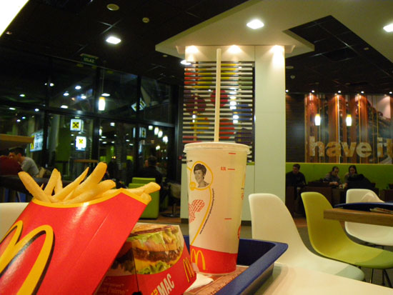 Abends war ich wieder im Hostel, Skype mit Chemnitz, organisierte meinen Besucher-Pass für die Fahrt zurück und ging dann nochmal kurz was essen. Jetzt hatte wirklich fast alles geschlossen und war McDonalds die Endstation. Schön designt – insgesamt gefällt mir Belgrad. Hier ist bissel Energie, mal sehen, wie es an einem normalen Tag aussieht.