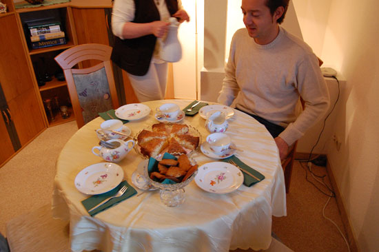 Ich war rechtzeitig war, fuhr nach dem Frühstück aber doch zu spät los. Das ärgerte jemanden aber am Sonntag ist das akademische Viertel auch locker. Blumenstrauß und meine Holzeule aus Polen kamen gut an. Café und Kuchen schmeckten. Wir erzählten, was nun alles so passierte. Die Geschäfte gingen OK im letzten Jahr aber das hat nichts für die Zukunft zu bedeuten. Halb 6 verabschiedeten wir uns.