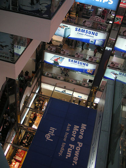 Da bin ich hoch zu little India, wo ich endlich das „Banana Leaf Rice“ essen wollte. Noch war’s zu zeitig — also zum Sim Lin Square mit einer riesigen Ansammlung von Elektronik-Shops.