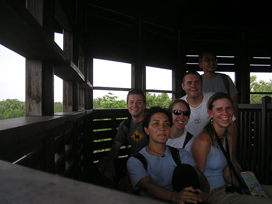 Der Tree-Walk war cool. Auf einer Hängebrücke liefen wir über die Baumkronen. 10 Minuten später wäre er geschlossen gewesen aber nun konnten wir die schöne Aussicht von da oben genießen. Über viele Stufen ging es wieder zurück. Wir hätten noch auf einen Turm gekonnt aber die meisten waren knülle.