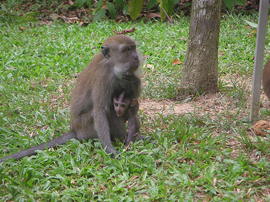 Auf der Wiese spielten kleine Affen herum. So rollten sie den Berg herunter oder saßen auch auf Autos. Es wurde später und wir gingen zum letzten Punkt der Tour. Erst mal T-Shirt Nr. 2 gegen 3 austauschen. Mann, war das immer noch warm…