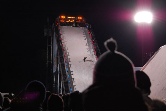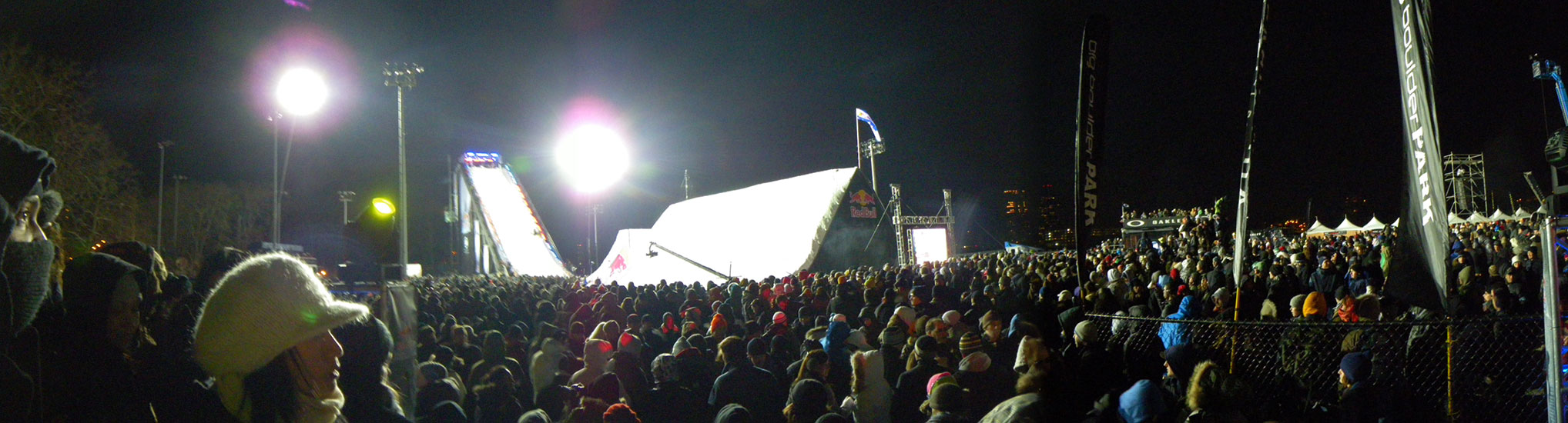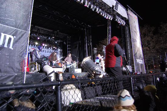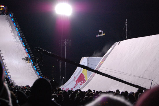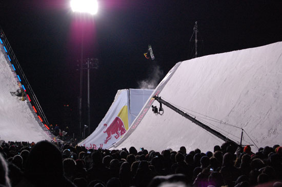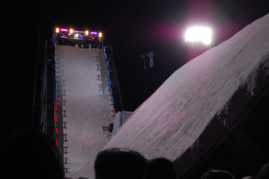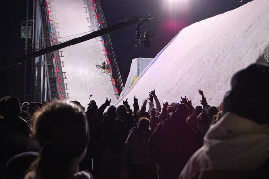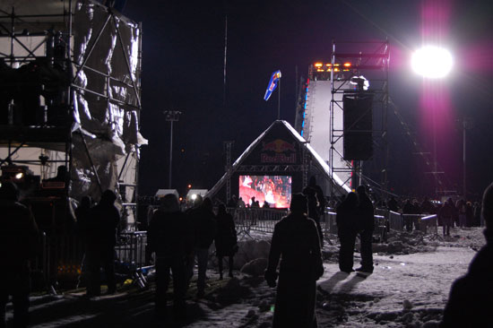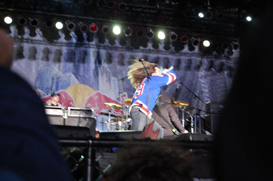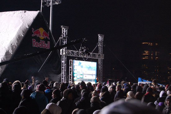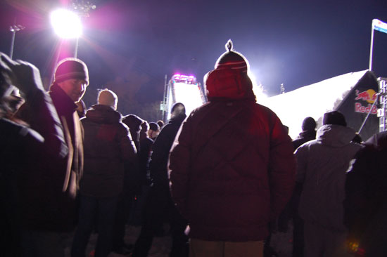Der Event wollte nicht enden und die Leute wollten endlich Anthrax sehen. Die Metal-Typen sollten spielen. Dann wurde noch ein Lauf angekündigt, der 3. im Final. Es ging um den ersten Preis und $50.000 und so waren die Boarder wohl mehr motiviert als wir Zuschauer. Meine Zehen hatten schon kein Gefühl mehr. Es war unklar, das einer sogar in kurzen Hosen und T-Shirt rumstand. Alle anderer frohren.
