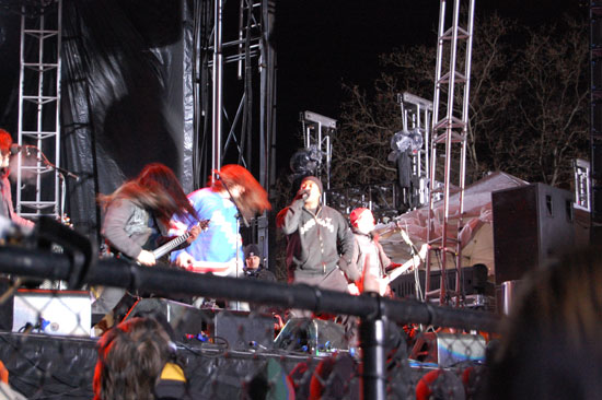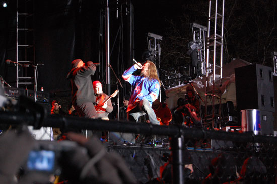 Dann endlich fand die Siegerehrung statt. Überdimensionierte Schecks wurden überreicht und Anthrax spielte auf. Chuck D hüpfte auch einen Song mir ‚rum. nach 3 Liedern war’s ausmusiziert. Naja, kostenlos eben.