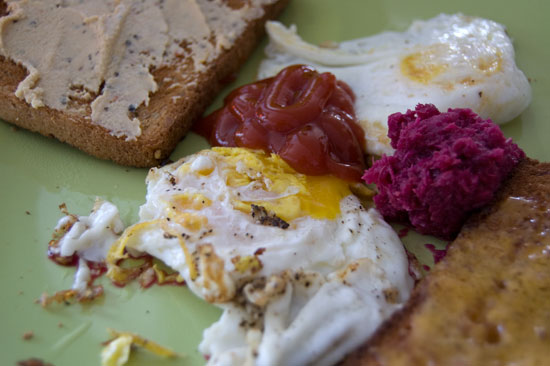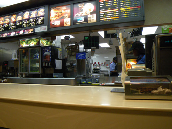 Das Steak, was ich vor ein paar Tagen kaufte, wollte ich heute essen. Bei McDonalds holte ich die Pommes und einen Salat. Beim Chinesen gab’s 3 Birnen für $1. Die $10, die ich mit hatte, reichten so für eine Menge Sachen aus.