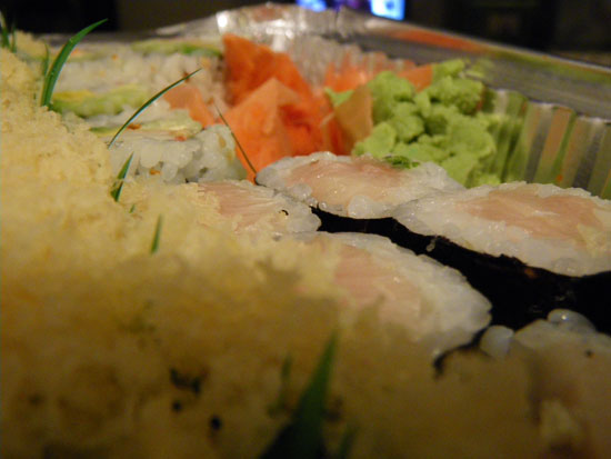Abends Sushi auf Bestellung $35. Schmeckte gut, obwohl ich kaum Hunger hatte.