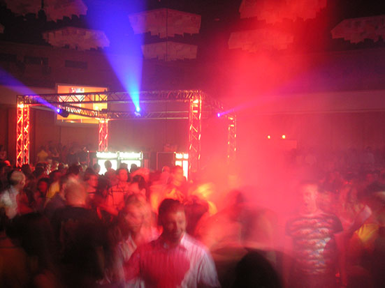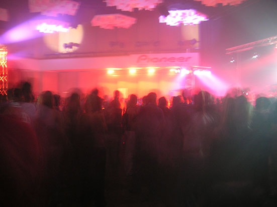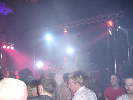Es war schon spät, Samstag = Party! Die Fiesta hatte ein gutes Aufgebot – in der Stadthalle auch viel Platz. Für €10 kann man was erwarten. Erster Floor am Eingang — OK — der Housefloor im Saal war cooler. SONO live und in Farbe. Ich traf meinen Bruder samt seinen Kumpels.