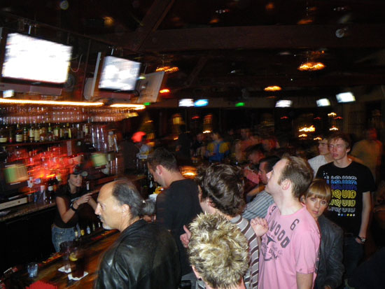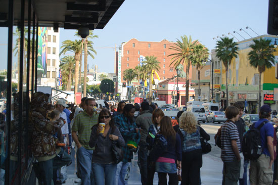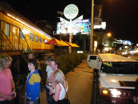Ein Nickerchen im Hostel, Dusche und dann ging’s um 8:30 auch langsam los. Es waren so viele Leute an der Limo-Tour interessiert, dass zwei gefüllt wurden. Eine Hummer und noch ’ne andere Stretch-Limousine wurden vorgefahren. Das sah cool aus. Ich war in der scheinbar geräumigeren Hummer, bekam erst mal bissel Sekt auf die Hose und hatte doch eine super Zeit. Wieder auf der Saddle Ranch. Als Gag wurde dort Zuckerwatte in Bechern serviert. Die Teststrecke für Pick-Up-Artists machte auch einer ’nen Spruch, dass er so jemanden mal gedatet hätte — also die so aussah, wie die rosa Zuckerwatte .. Naja, nett. Ich hatte ’nen großen Rum & Coke ($10) und am Ende noch ’nen kleinen ($6) und war inzwischen mit den Sachen aus der Limo gut beschwipst.