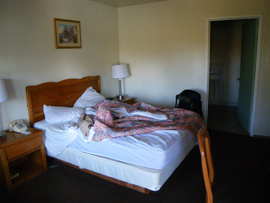 An der Rezeption hatten sie schon meinen Mietvertrag. Ich fragte, ob ich die Zimmer mit und ohne bad sehen könnte.Schließlich hatte ich für $250/week + tax nur eins ohne reserviert. Dann entschied ich mich für eins mit Bad – $50 mehr aber was soll’s. Der Vetrag musste abgeändert werden aber die Firmen-VISA klappte problemlos.