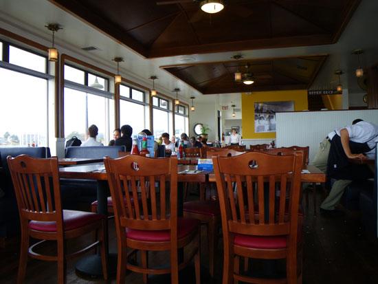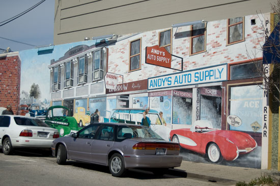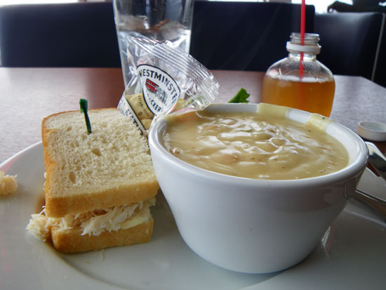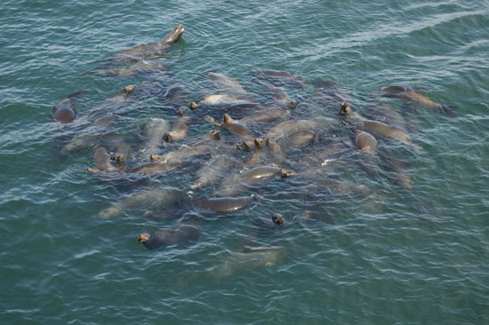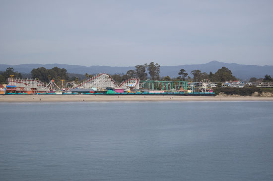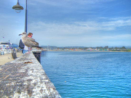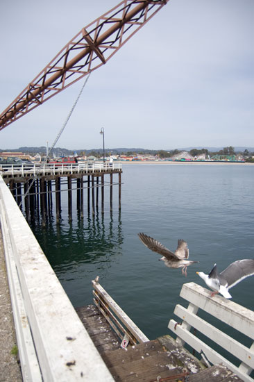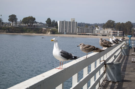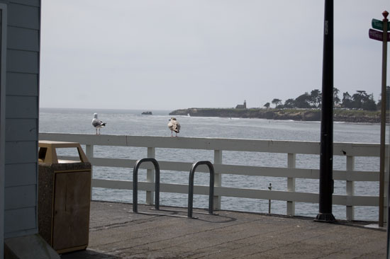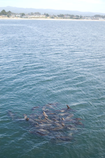 Viele Fisch-Restaurants befinden sich auf dem Wharf. Santa Curz hatte im Laufe der Geschichte einige – 4 oder 5. Die Dinger sind zum Beladen von Schiffen gedacht und hatten oft Eisenbahnschienen. Jetzt ist hauptsächlich Tourismus das Geschäft. Ein paar Robben trieben im Meer herum und schnieften vor sich hin. Ich ging in ein Restaurant, hatte ein halbes Krabben-Sandwich + Chowder und ’nen Abbelsaft. Schmeckte sehr gut, weil alles frisch – bis auf den Saft.