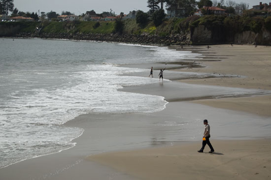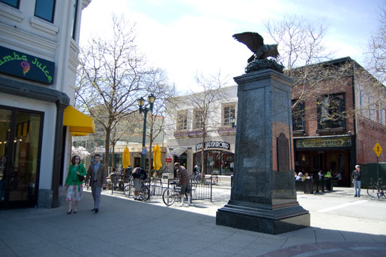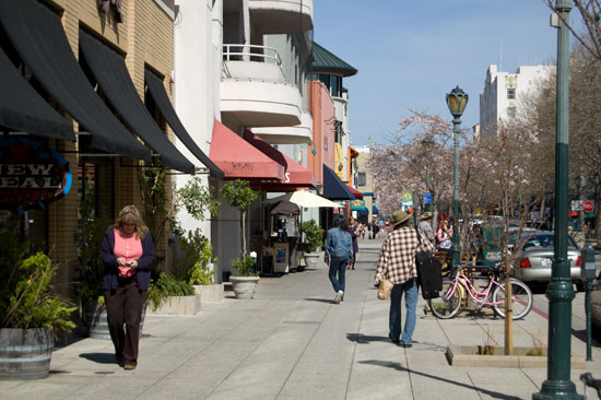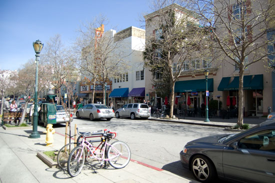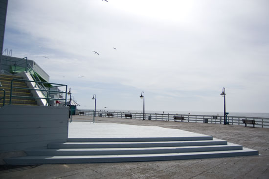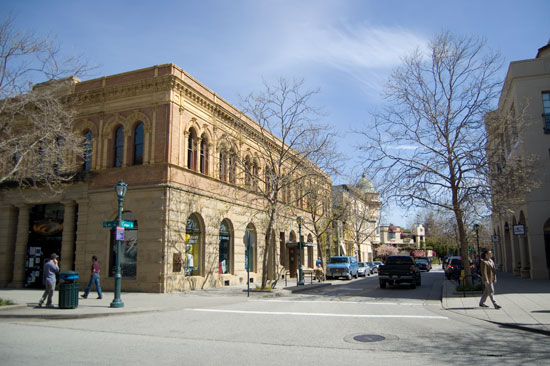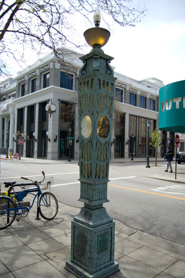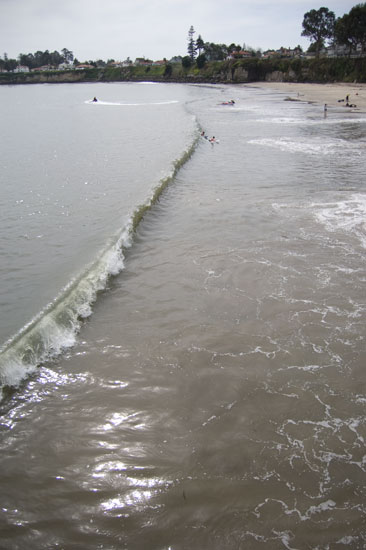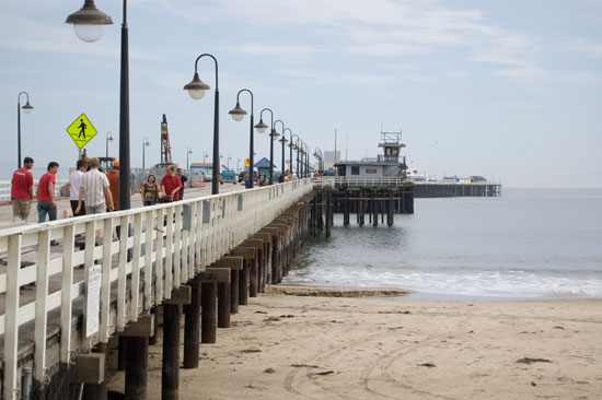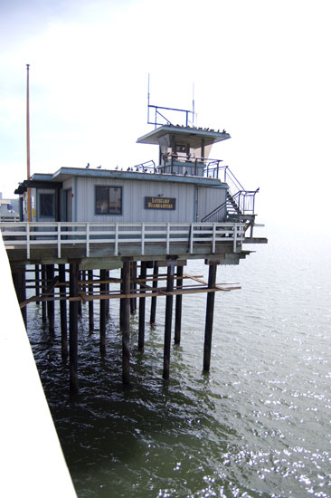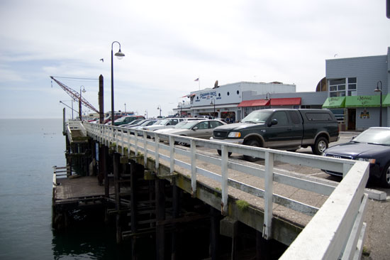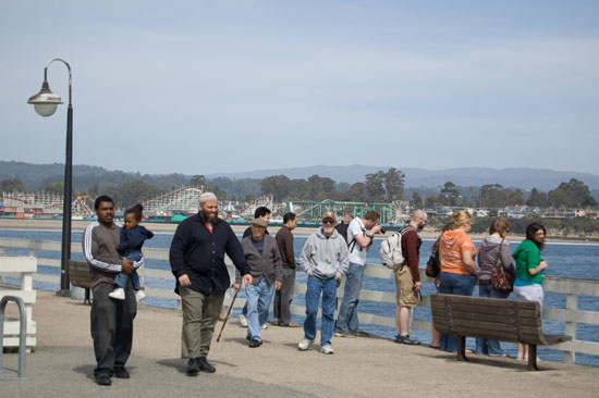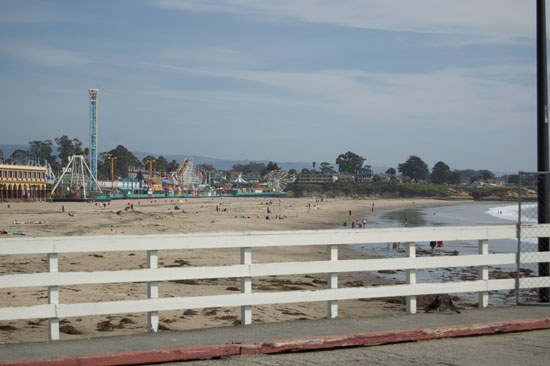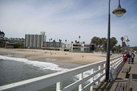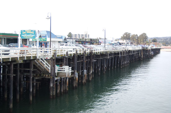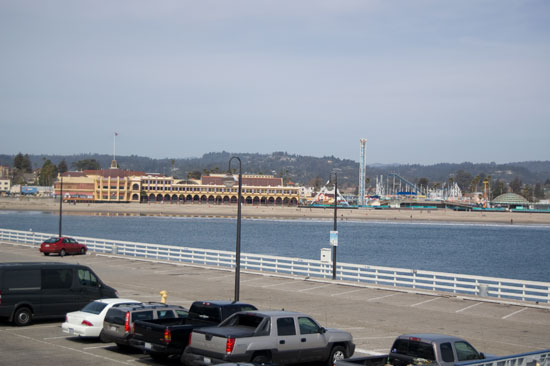 Zuerst ging’s die Pacific Ave entlang Richtung Downtown. Das hatte ich gestern abend schon gesehen. Bei ColdStone hatte ich ’nen Café und Brownie. Ich sah den Uhren-Turm und genoss das tolle Wetter. Zum Wharf spazierte ich auch noch – quasi von einem Ende der Pacific Ave zum anderen.