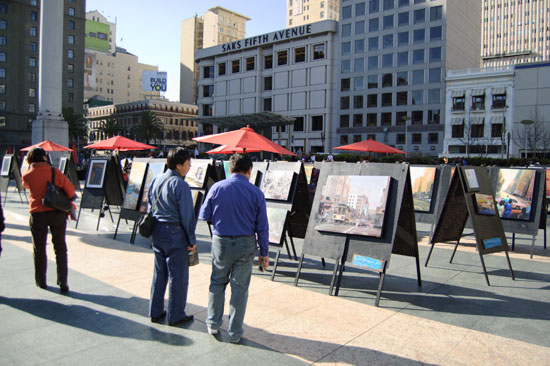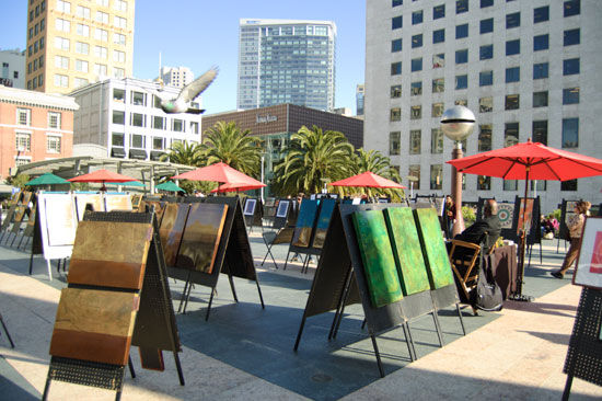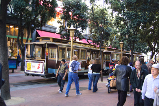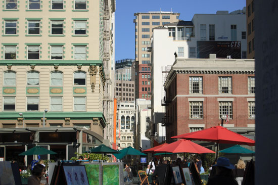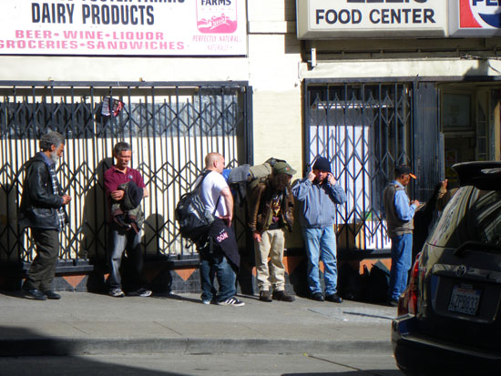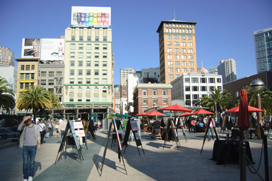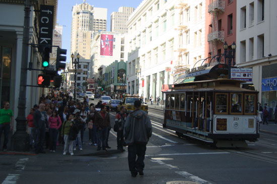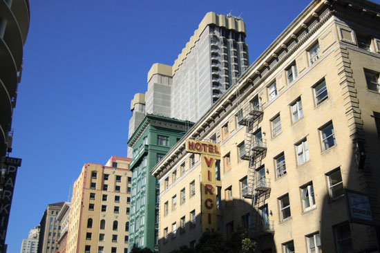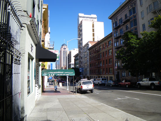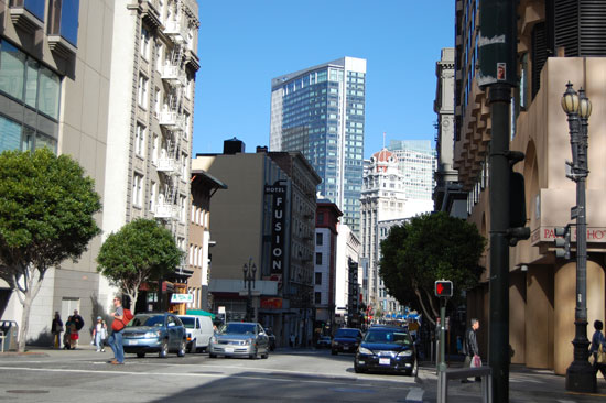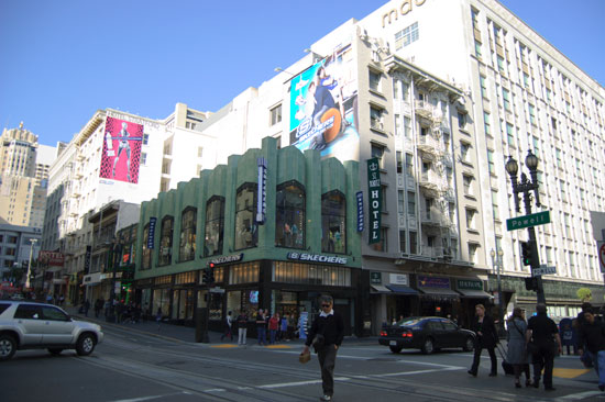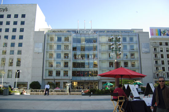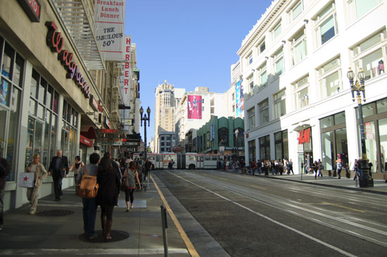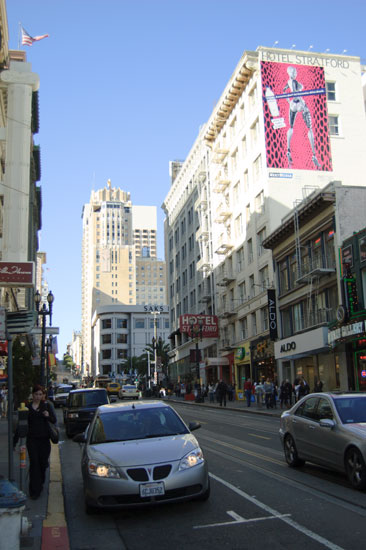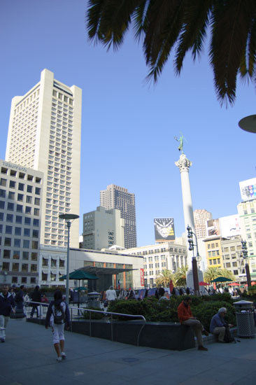 Ich arbeitete bis nach 15:00 und ging dann was essen. Draußen schönster Sonnenschein, von dem ich aus meinem Zimmer mit Wandblick gar nichts mitbekomme. Runter auf dem Weg zu Ellis St kommt einem viel Elend entgegen. Viel Obdachlose und Penner(innen). Viele standen auch in einer Schlange. Erst später sah ich, dass das ’ne Kirche war – die Suppenküche wohl. Ich hatte mein spätes Frühstück in einem Donut – Laden. ‚Nen Donut, Café und später noch eine Apfeltasche. Zucksergesüßt spazierte ich Richtung dem Union Square. Die Entscheidung ob RAW oder nicht auf der Nikon ist immer noch nicht 100%ig sicher. Eigentlich würde ich am liebsten nur RAW knipsen aber die Nachbearbeitung ist aufwändig.