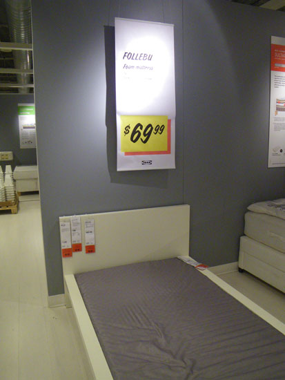 Wenn die Möbel weg sind, wird eine Matratze gebraucht. Wir fuhren zu IKEA, wo es eine Schaummatraze für um die $70 geben sollte. Diese billigen Geräte waren im Brooklyn aber ausverkauft. Kein zu finden und eine große Zeitverschwendung.