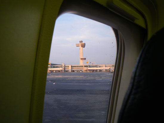 Dann nach dem Boarding im Flieger dauerte es erst eine Weile vorm ablegen, da irgendwas im Cockpit repariert werden musste. Als wir dann Richtung Startbahn rollten sah ich eine lange Schlange von Flugzeugen, die auf ihren Start warteten. Der Pilot sagte durch, dass es wohl 40 Flugzeuge seien. Das würde eine Weile dauern. Und das tat es auch. Als wir etwas 20 Flieger vor uns hatten, wurden die Turbinen zum Umweltschutz abgestellt. Wasser wurde gereicht und dann noch eine Weile gewartet. Schließlich ging es doch gut los – über 2 Stunden später als geplant. Mein iPod startete nicht mehr. Ich hatte ihn während Texas Hold’em ausgeschaltet. Jetzt wollte er, nach dem Bild zu urteilen, mit iTunes verbunden werden. Keine Audiobooks während des Flugs. Da konnte ich nichts machen. Internet gab’s auch nicht, mein MBP hatte ich ja unter dem Vordersitz. So hieß es einfach warten…
