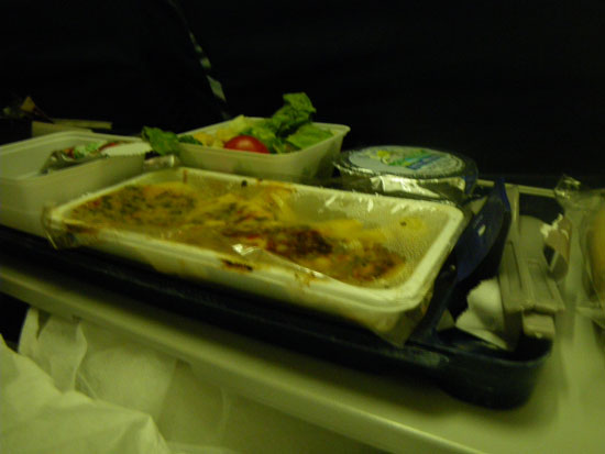 Schlafen konnte ich nicht oder nur halb. Das Essen war ganz OK mit Wein.
