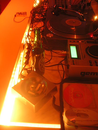 Es war schon abends. Musste mal ‚raus. Beim Finanzamt (mit gigantischen Briefkästen) steckte ich in der Nacht nochwas ein. Die Runde über McDonalds und mögl. neues Büro führte zur Neo Bar. Bruder = DJ.