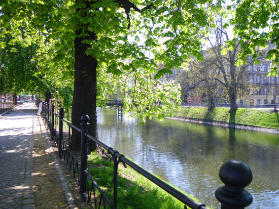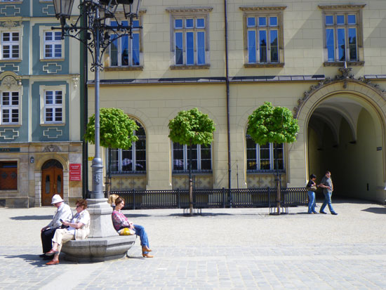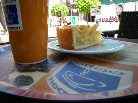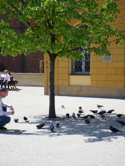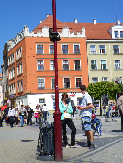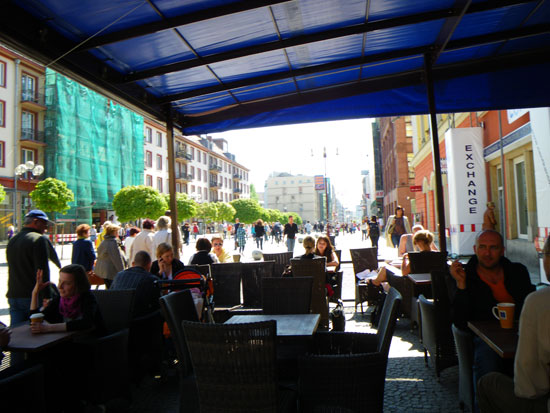 Ich ging zum Coffeeheaven, holte mir ein Stück Apfelkuchen und ’nen großen Cappuccino. Dann spazierte wieder richtig Fluss auf der Suche nach dem Friseur. Nach ein paar Runden fand ich ihn, war zum Samstag aber schon ab 14:00 geschlossen. So ging ich in Richtung eines Parks, kaufte mir ’nen Sonnenbrille für 25 Zloty und war voll zufrieden mit dem Wetter und allem.