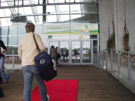 Mit dem Smart auf der Autobahn war das alles OK. Nicht so viel Platz und bei 146 km/h fühlte ich mich schon leicht unwohl. In der Nhe von Staakow waren wir dann da – „Tropical Islands“. Ein par Autos und Reisebusse standen auf dem Parkplatz. zum Mittwoch war aber nicht so viel los.