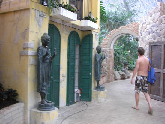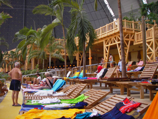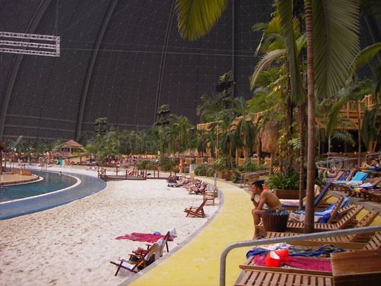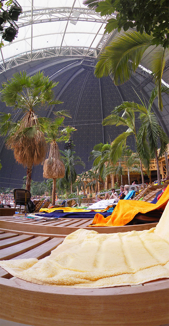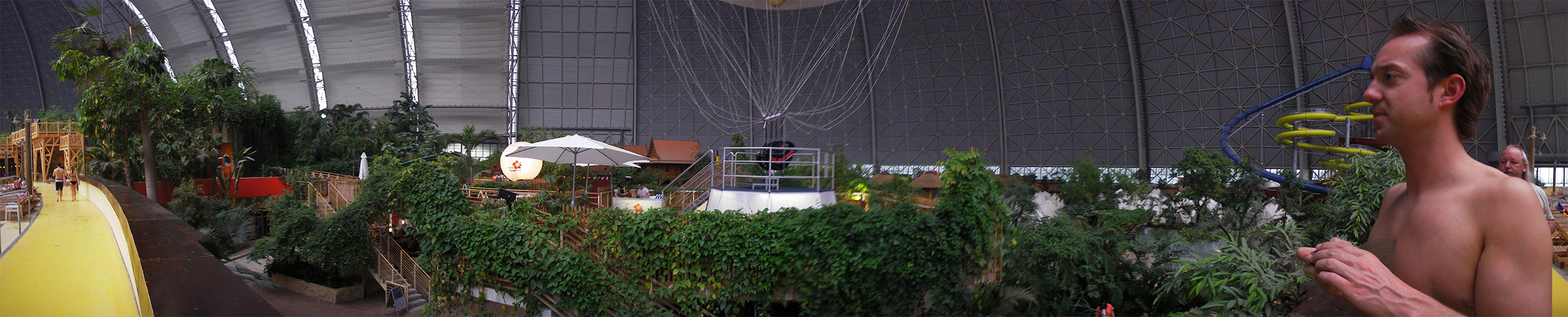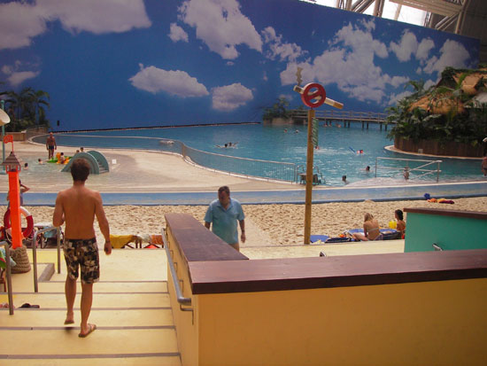 Alles schön sauber und technisch ausgefeilt. Wir legten uns an den künstlichen Strand, ich ging mal ins Wasser. Natürlich fühlt sich das alles irgendwie komisch an aber die Halle ist so riesig, dass es alles ganz OK wirkt – wie eben ein Spaßbad.