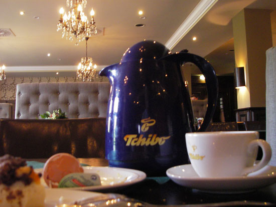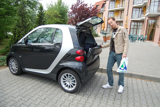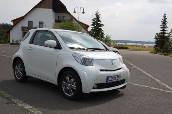 Frühstück gab’s hier im Van der Falk Hotel bis 10:30 und das lohnte sich. Viele fleischige Sachen aber auch Käse und Fisch. Der Café schmeckte und ich war dann gut satt. Wir checkten aus und sahen mit dem Smart auf dem Parkplatz einen Toyota iQ.