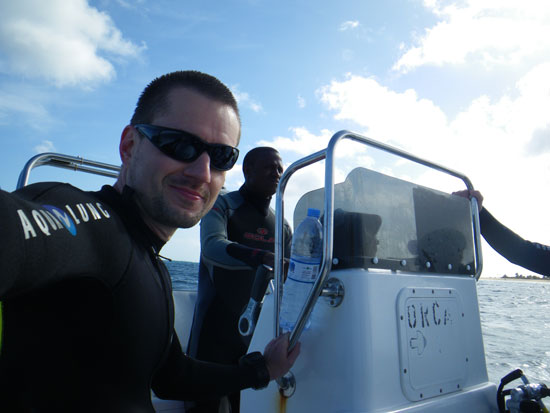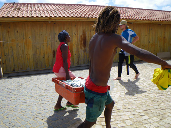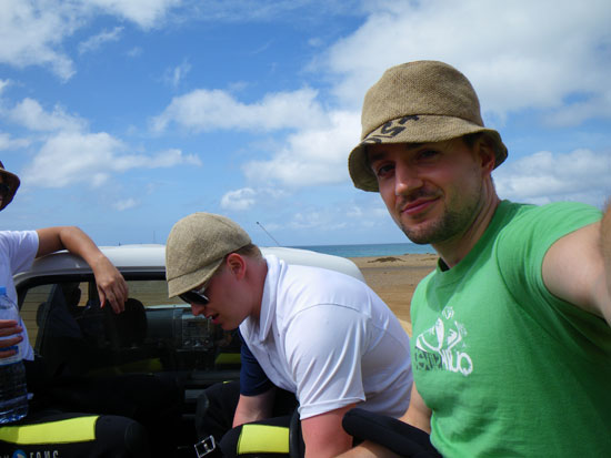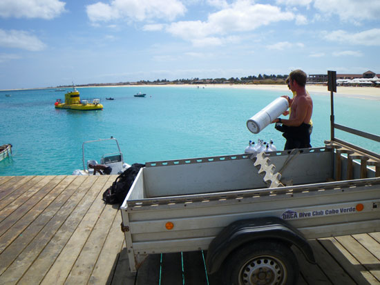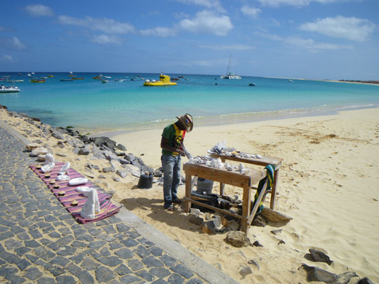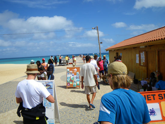 Sal hat ja nicht so viel zu bieten, sodass wir etwas herumwanderten. Ein Sonnenbrillenverkäufer wollte Sonnenbrillen verkaufen, obwohl wir alle eine trugen. Der Typ wurde dann beauftragt, Spielkarten zu besorgen. Ich hatte ein Fladenbrot mit Schinken und ’nen Café. Das schmeckte alles ganz gut. Wir kauften Lebensmittel ein,und trafen die Finnen, die schon auf der Suche nach mir waren. Um 13:00 sollte es schon zum Tauchen gehen.
