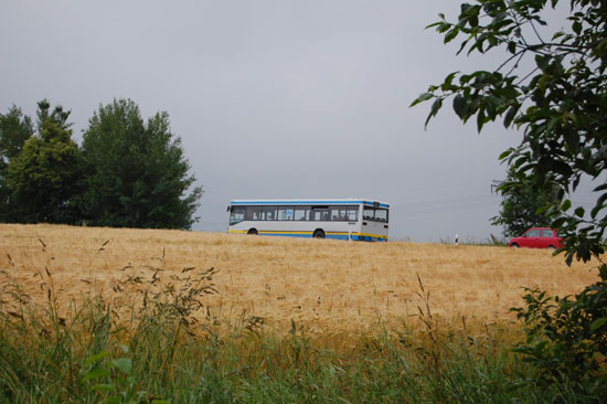 Den Bus sah ich gerade von dannen ziehen, als ich mich autolos auf den Arbeitsweg machte. Durch das schlechte Wetter war das Gras nass, meine Hose und Schuhe auch – wenigstens sprangen ein paar Photos dabei raus.