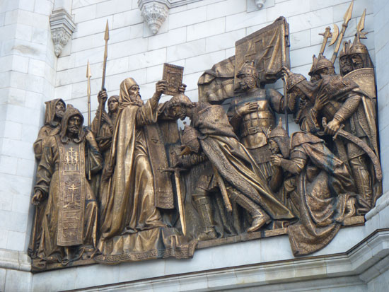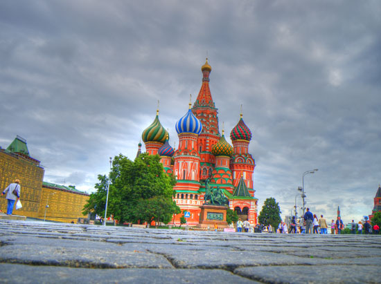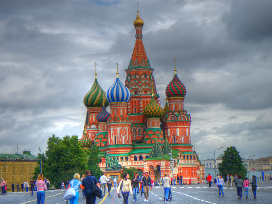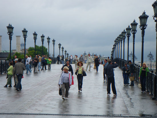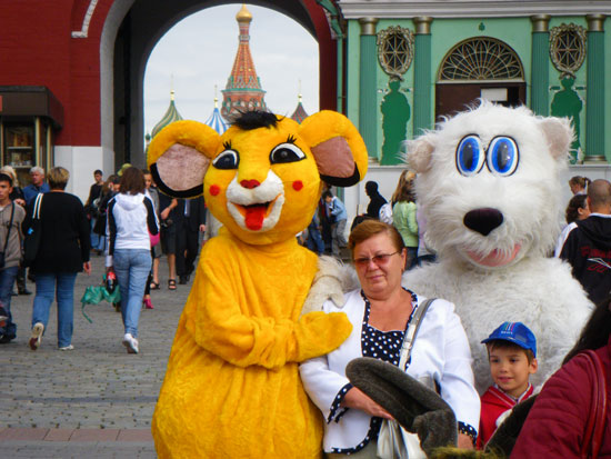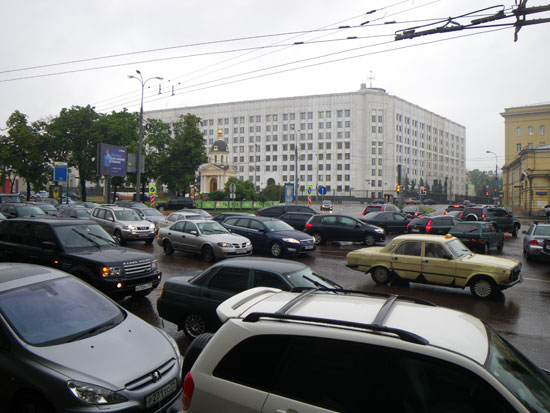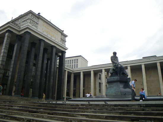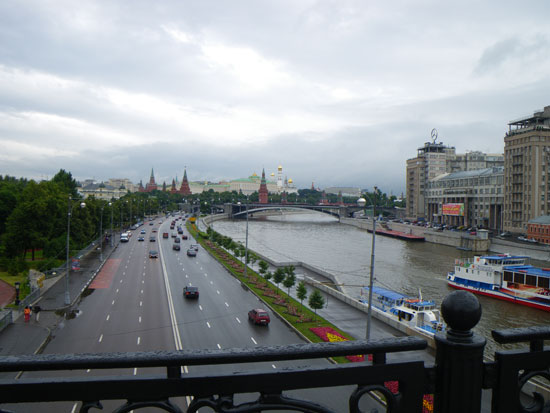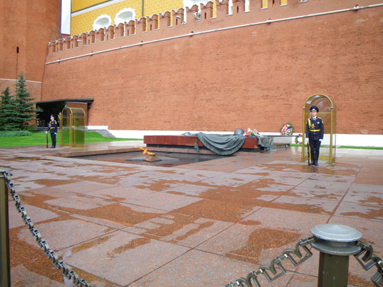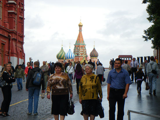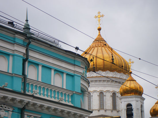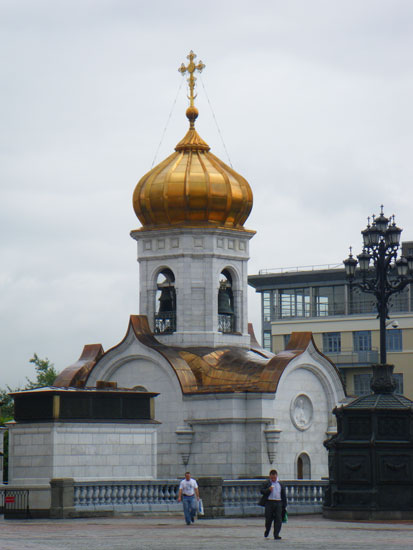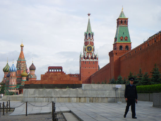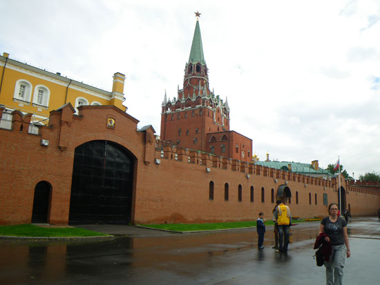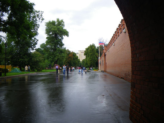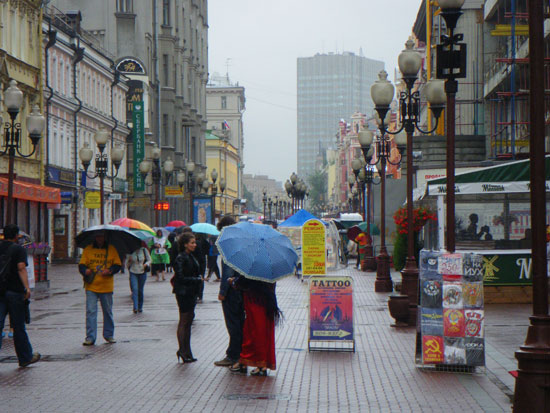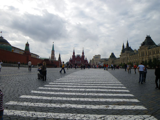 Die Arbat Straße ist von Touristenläden und sonstigen Geschäften gesümt, eine reine Fußgänger-Passage. Die Neue Arbat Straße zurück sieht dagegen etwas trostlos aus. Kommunisitischer Stil und viele geschlossene Geschäfte. Statt wieder zurück ins Hostel zu gehen, und mir einen Pullover zu holen, wurde es gerade wärmer und trockener. So setzte ich die Tour fort: die Kathedrale, das einen Eierkuchen, Toilettenbesuch im Pushkin Museum und schließlich Roter Platz. Immer wieder nett, wenn auch nichts mehr besonderes, da ich ihn schon ein paar Mal sah.