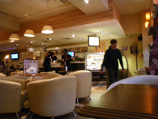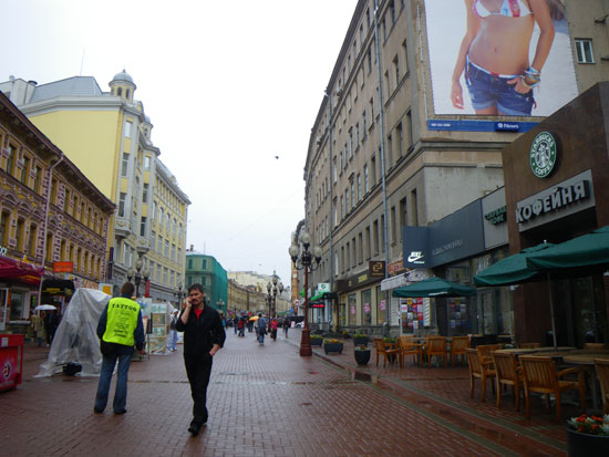 Das Wetter war zuerst extrem ungemütlich. Es nieselte, war kalt und einfach mies. Ich fror schnell, holte mir erst mal ein Frühstück in den allpräsenten Coffé Haus – in der Arbat Straße. Ein doppelter Cappuccino und ein vegetarischer Wrap.