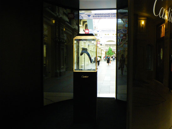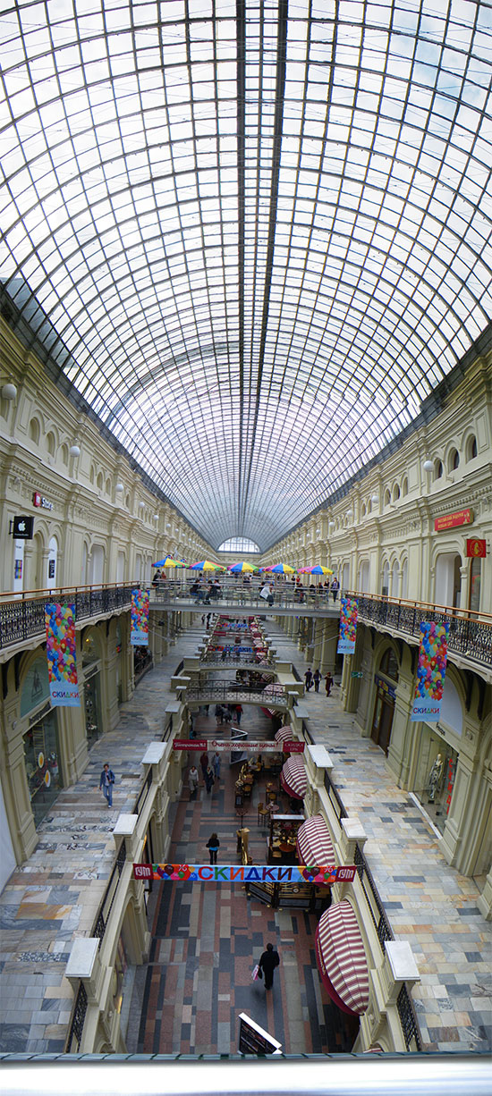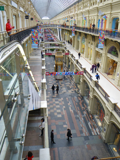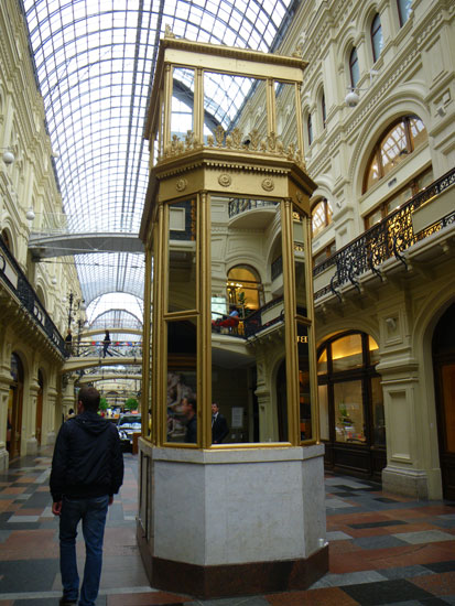 Jetzt ging ich mal ins GUM, das Kaufhaus. Ein Eis da für 50 Rubel konnte ich mir leisten. Sieht nett aus. So mancher kam gerade von einem Kaufrausch zurück und es stapelten sich Tüten. Ansonsten eher wenig Gedränge, dafür aber sogar ’nen Apple-Shop.